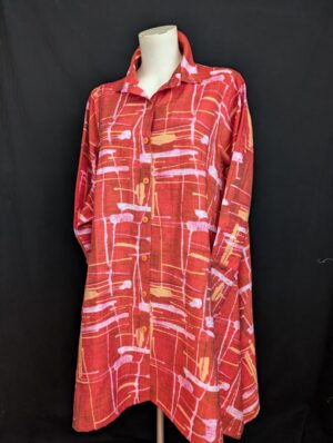 Partager ce produit avec vos amisPièce unique Grande tunique chemisier en rayone et coton assez épais. Poches devant, col chemisier, boutonnage devant, manche droite longue,…
