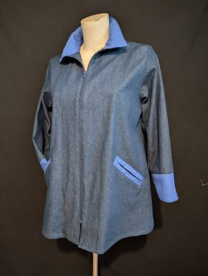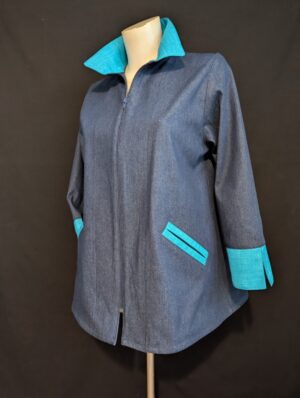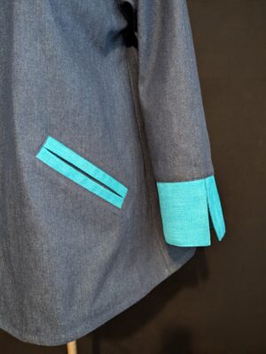 Partager ce produit avec vos amisMarla Veste/manteau en 100% coton denim bleu combo turquoise. Coupe ligne A, poches passepoilées, manche longue avec poignet fente, zipper…