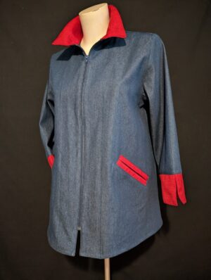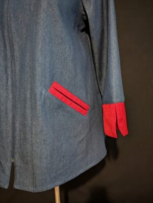Partager ce produit avec vos amisMarla Veste en denim bleu avec combo rouge. Coupe en A, poches passepoilées, manche longue avec fente, zip devant. Hanches:…