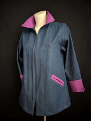 Partager ce produit avec vos amisMarla Veste/manteau en denim bleu combo Mangoustan ( rose violacé ). Coupe ligne A, zipper devant, poches passepoilées, manche longue…