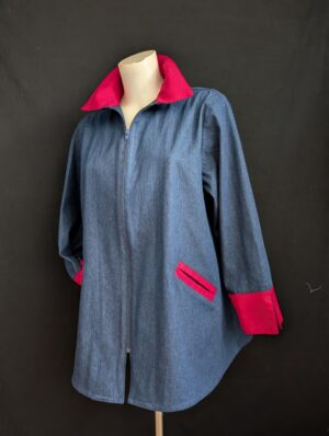 Partager ce produit avec vos amisMarla Veste/manteau en denim bleu combo magenta. Poches passepoilées, zipper devant, long manche avec poignet fente, coupe en A. P.S.…