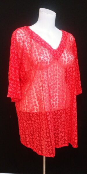$95.00$49.95Partager ce produit avec vos amisPartager ce produit avec vos amisV neck top in red extensible lace fabric. Could be wore over a tank top, sleeveless dress or swimsuit. One…