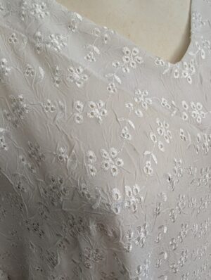Dolman cut top , one piece sleeve, V neck asymmetric hem, polyester with eyelet embroderies. There is few of that style on my site at…