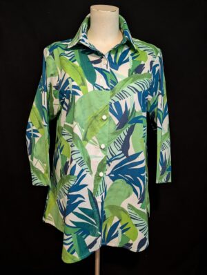 Partager ce produit avec vos amisMarla Beautiful steal blue with black and white print shirt. Blend of 45% cotton and 55% rayon. Shirt collar, long…