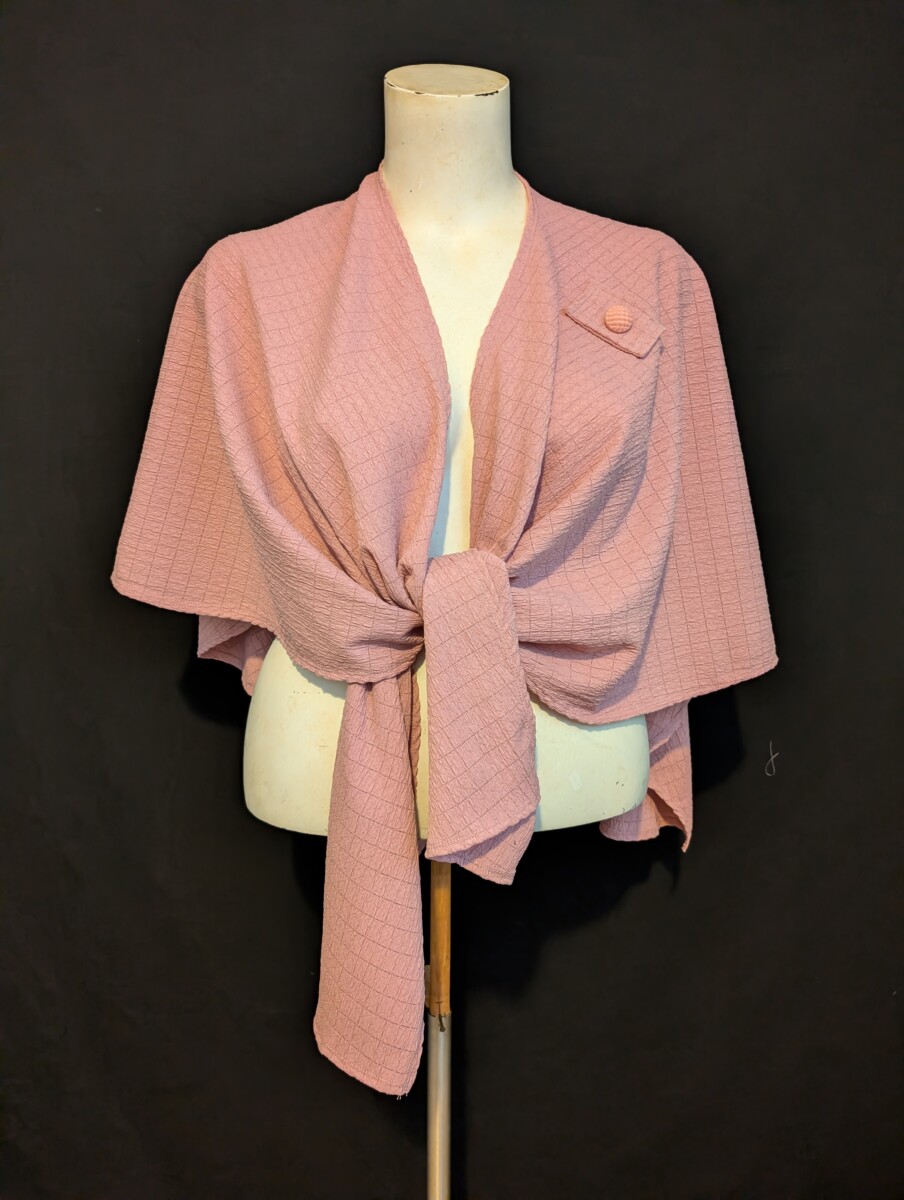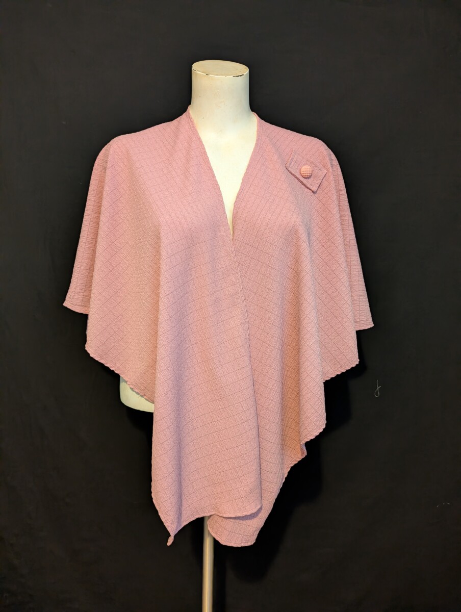 Short cape in a poly/spandex knit with a shell effect . Extensible fabric in Kennedy pink.