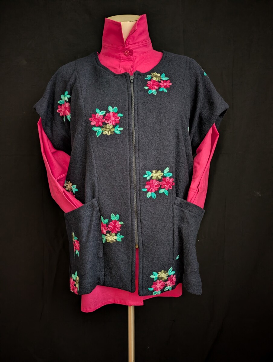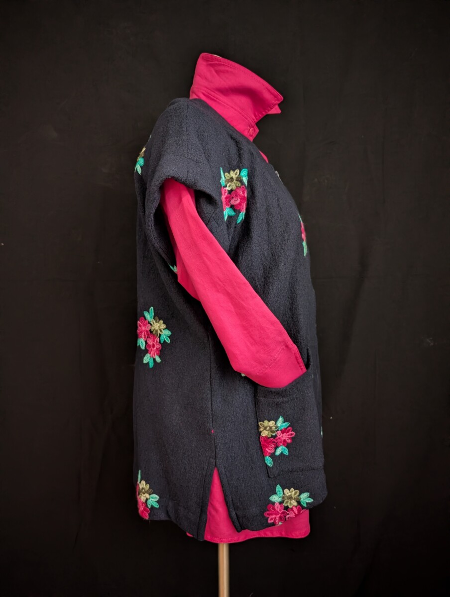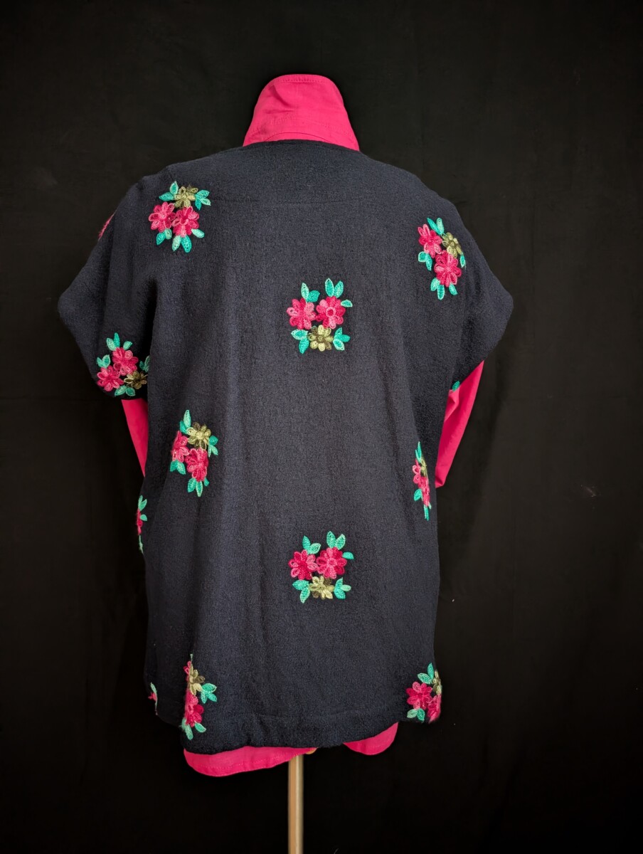 Laine bouillie marine brodée de fleurs