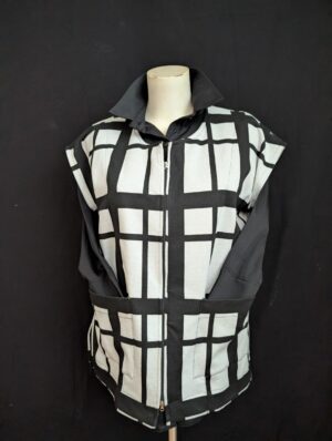 $115.00$57.95Partager ce produit avec vos amisPartager ce produit avec vos amisVeste ligne A en 100% piqué de coton. Motif crème sur un fond bleu gris pastel. Manche pagode, encolure finition…