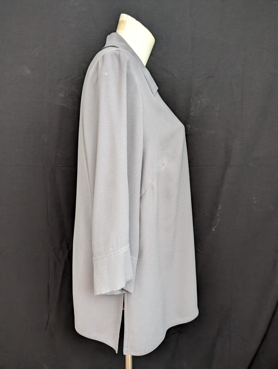 $95.00$49.95Partager ce produit avec vos amisPartager ce produit avec vos amisChandail tunique encolure en V, manche à même, ourlet asymétrique. Tissu extensible poly/soandex Style plus approprié pour tailles fortes.